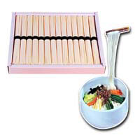 Ilpum Somyeon, made from non-bleaching flour, is receiving recognition as the finest noodles in the country. Ilpum Somyeon produced with good raw material and all kinds of devotion also conducts the pursuit of differentiation from general products and is suitable for present use. This products is smooth and sticky by virtue of strengthening the gluten formation of wheat flour and maturing noodle with adequate temperature in the course of kneading dough. There may be some differences in the color of Nokcha Somyeon on account of climatic conditions during the process of production but nothing is wrong with the quality.