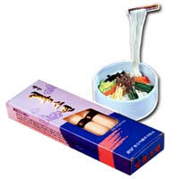 Ilpum Somyeon, made from non-bleaching flour, is receiving recognition as the finest noodles in the country. Ilpum Somyeon produced with good raw material and all kinds of devotion also conducts the pursuit of differentiation from general products and is suitable for present use. This products is smooth and sticky by virtue of strengthening the gluten formation of wheat flour and maturing noodle with adequate temperature in the course of kneading dough. There may be some differences in the color of Nokcha Somyeon on account of climatic conditions during the process of production but nothing is wrong with the quality.