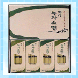 >>> Feature of Green Tea Noodle Green Tea Noodle, mainly made from unbleached Australian flour and wild tea produced from Hwagae, Jirisan Mountain, is definitely differentiated from other similar noodles in that it is far finer and stickier than them. Noodles are very soft and smooth because flour is kneaded with sufficient water content to enhance formation of gluten and they ard aged at a proper temperature. Green Tea Noodle will also make you enjoy the color, fragrance and taste of green tea.